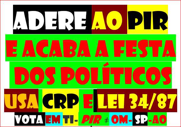 PORTUGAL PIR PARTIDO INDEPENDENTE DO REFERENDO ÚNICO QUE SATISFAZ TODOS OS REQUISITOS DEMOCRÁTICOS E LEGAIS EXIGIDOS NA CRP A LEI DAS LEIS A QUE TODAS AS OUTRAS SE SUBMETEM SOB PENA DE VIOLAÇÃO QUE DÁ PRISÃO TRANSFORMA COMUNISTA FASCISTA NAZISTA DEMOCRACISTA GLOBALISTA